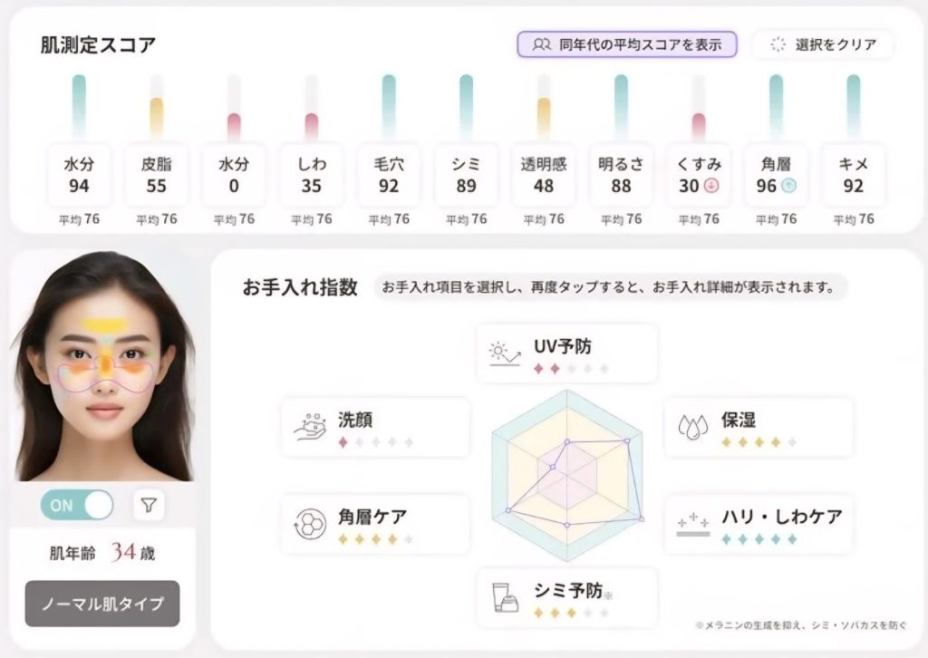 11項目からなる今の肌状態がグラフになって見ることができます。
