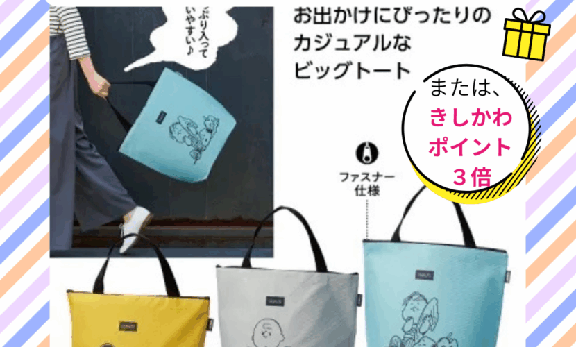 軽くて大きな、持っているだけでも楽しい『大きなスヌーピートートバック』※3色から選べます